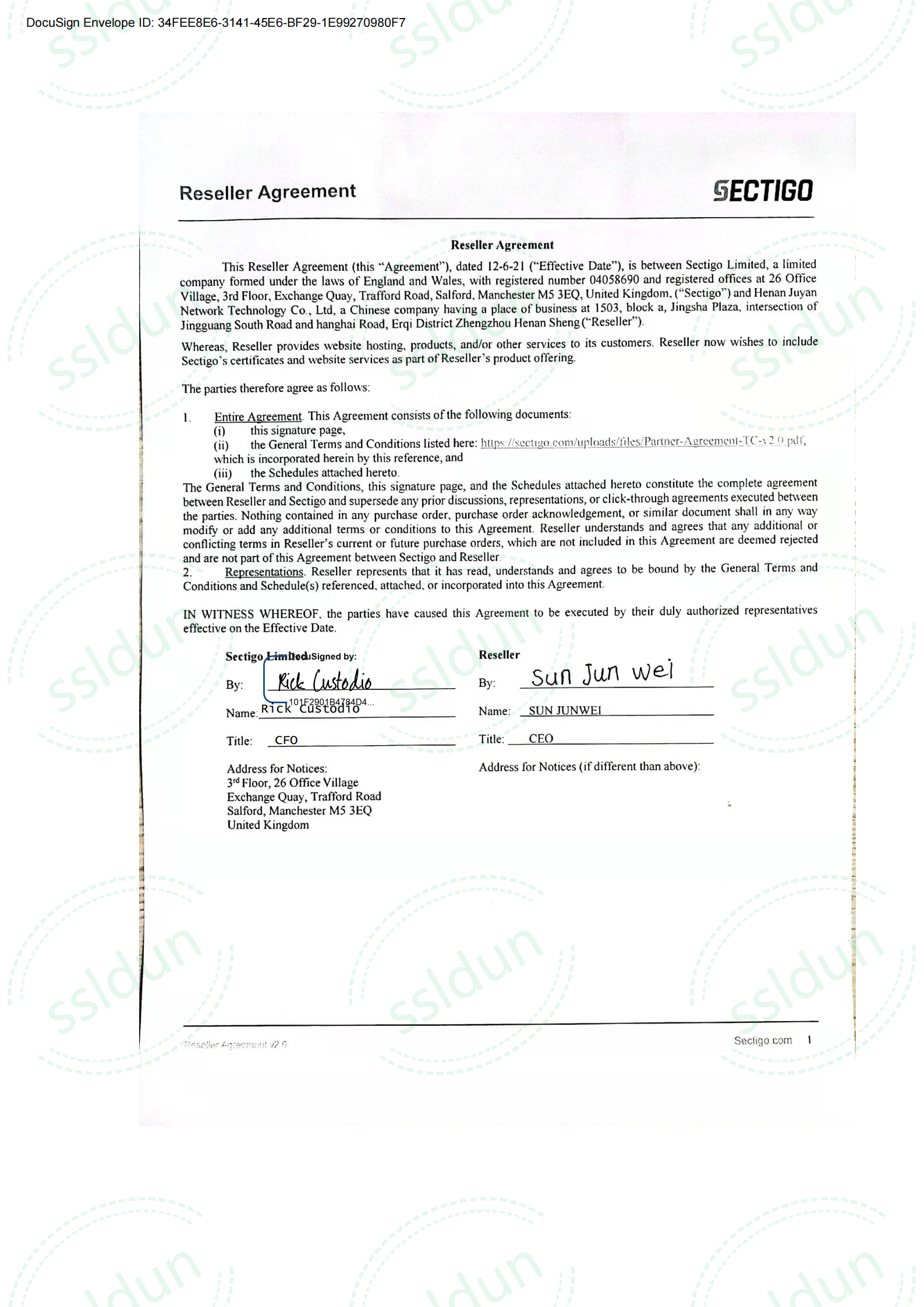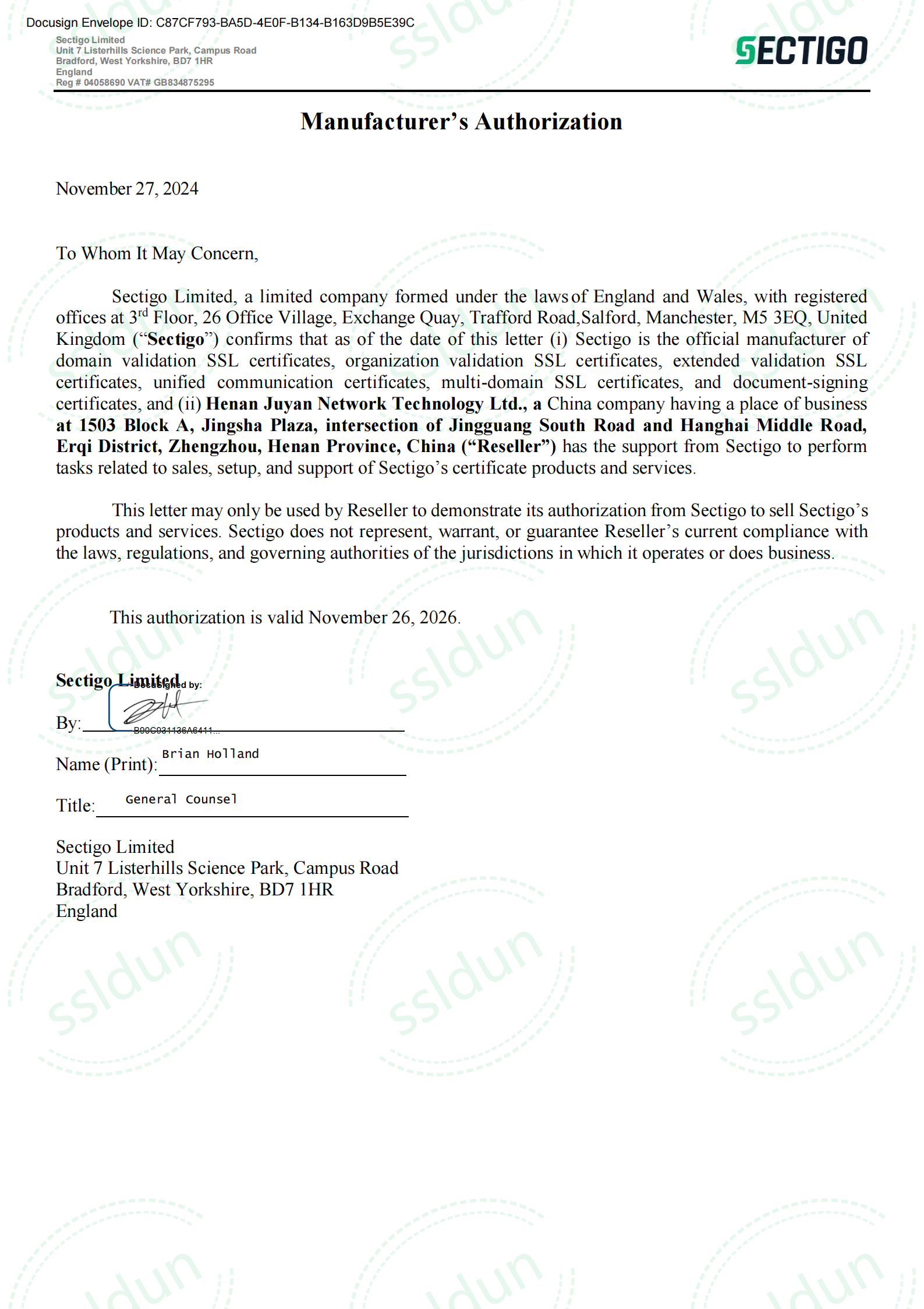 河南聚妍网络科技有限公司(成立于2016年,旗下品牌ssldun创立于2020年),以下是ssldun与certum、sectigo、globalsign授权协议部分截图,仅供参考